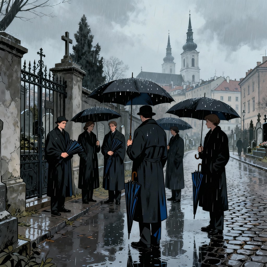 As the casket is lowered, I shake hands with lawyers, politicians, and three women who will dine with the president tonight and pass Polish law tomorrow. All seem to know me already, or at least know I am someone’s secret. For once, that feels like a shield. Female senators, heads of NGOs, government whisperers—each veiled in black, umbrellas as artful as armour.