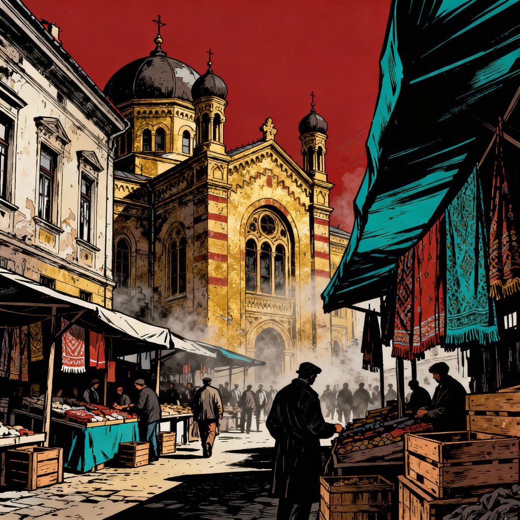 Crossing into Romania near Satu Mare, the landscape reshapes itself: Hungarian, Romanian, and German lines blending in markets where old synagogues cast their shadows across stalls of smoked sausages and bread from ancient grains. The richness should steady me, but my chest tightens.