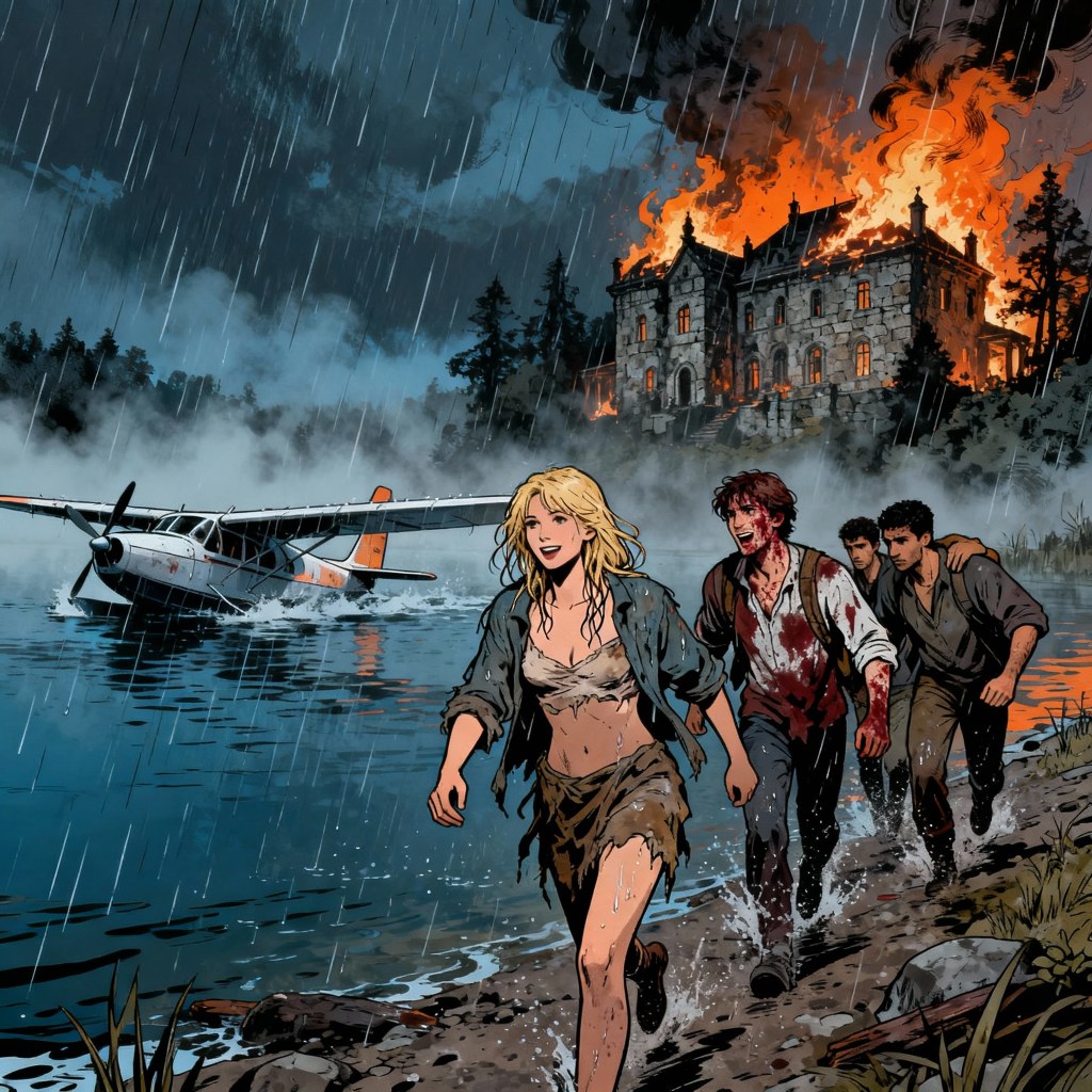 We burst out onto the lakeshore—rain-soaked, half-dressed, gasping. My torn blouse clings to my skin, and a wild laugh bubbles up from somewhere deep in my chest. All this chaos—gunfire, traitors, staged kidnappings, bruises in places I didn’t know I could bruise—and for what?