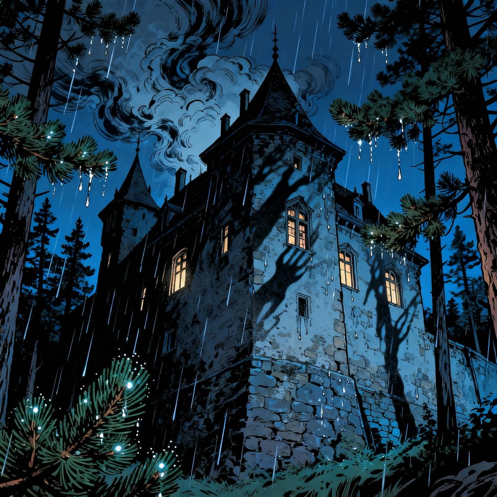 Shadows surge through torchlight—faces like death masks, rifles raised. The ruin’s old stones hold their breath as the first shots crack through the air, the dance begun: friend and traitor, past and present, survival and faith all collapsing into another border skirmish, another story written in the smoke and fear of Transylvania’s twilight.