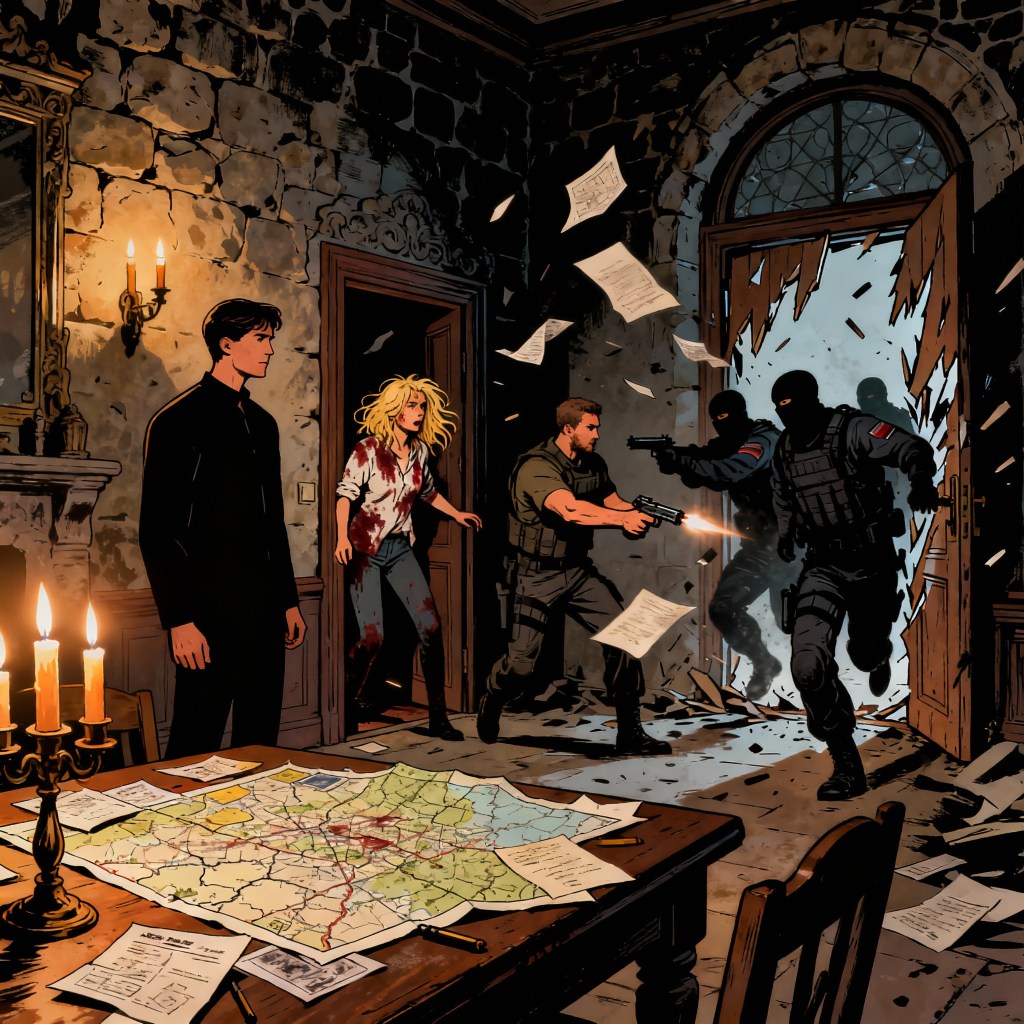 Before I can unleash the fury building in my chest, Bartek appears at my side: “Movement at the rear. Heavy footfalls—ex-Soviet, maybe, or worse. Sandi’s holding the hall.”