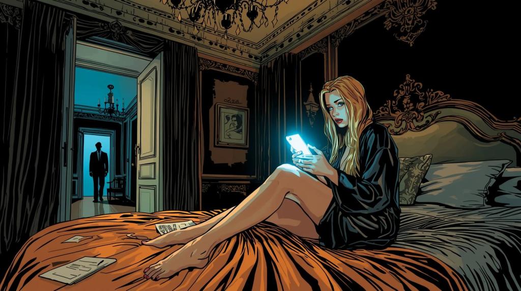 Bed again, the silk now familiar and cooling, muscles soft as the city’s night murmur. The lamp is within reach when my phone rattles across the table—a buzz sharp and unnerving, cutting the breath of midnight.