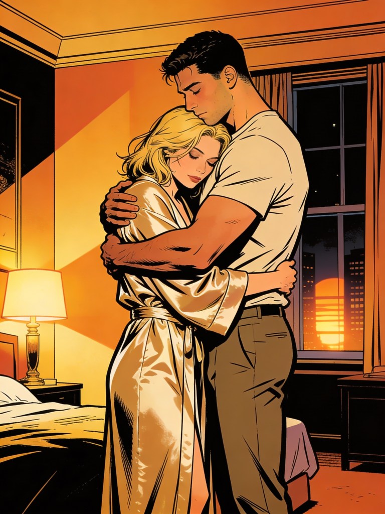 His eyes linger on hers, searching for something — accusation? Grief? If he finds it, she won’t give it. She wants this to be clean, full of grace.
