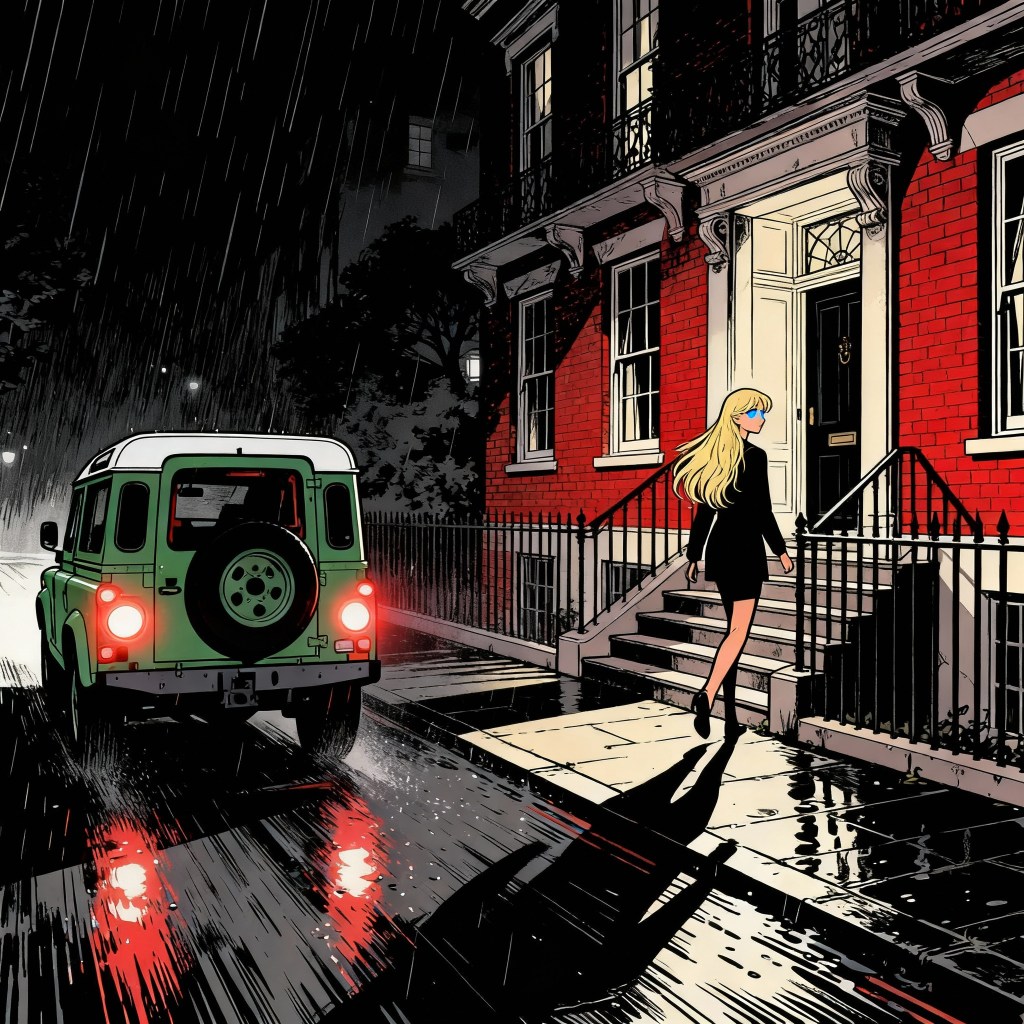 I climb into the Land Rover, shoulders squared and smile fixed, knowing this night won’t be boring and nothing ever ends as elegant as it starts.