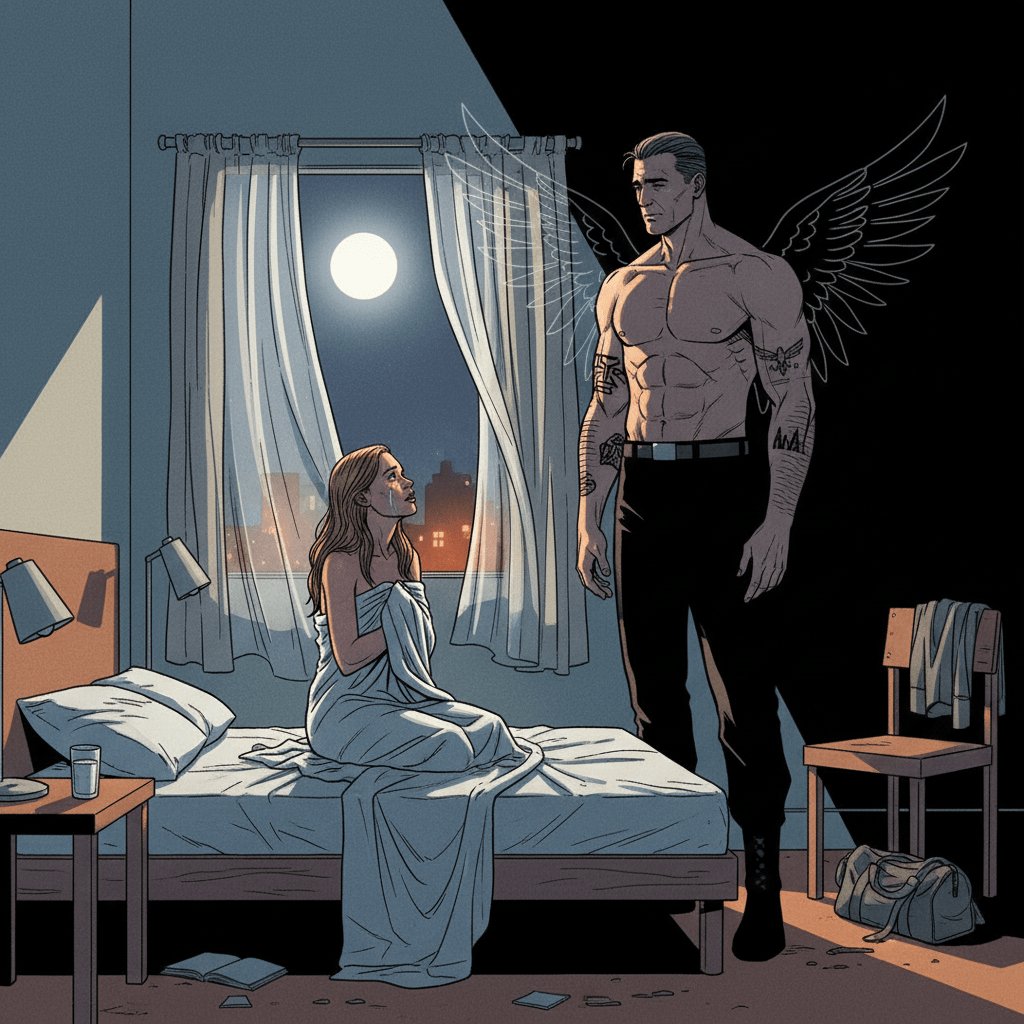 That night, I awake to the warmth of my own tears, the ache of dreams I can’t quite remember. I sit up, rubbing my face—and for the first time, I notice Mikael isn’t curled up on the floor. Instead, his shadow looms at the side of my bed, silent, uncertain.
