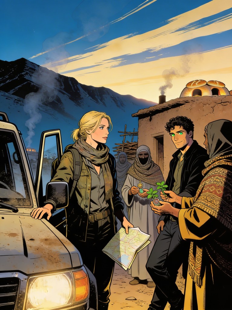 The sky is streaked with pale gold and indigo as the village begins to stir. We are greeted by the aroma of baking bread and woodsmoke wafting through the mountain air. The villagers, wrapped in woven shawls, beckon us into the communal room, where rugs are spread and bowls of honey, olives, and thick white cheese await. Mint tea steams in glass cups.