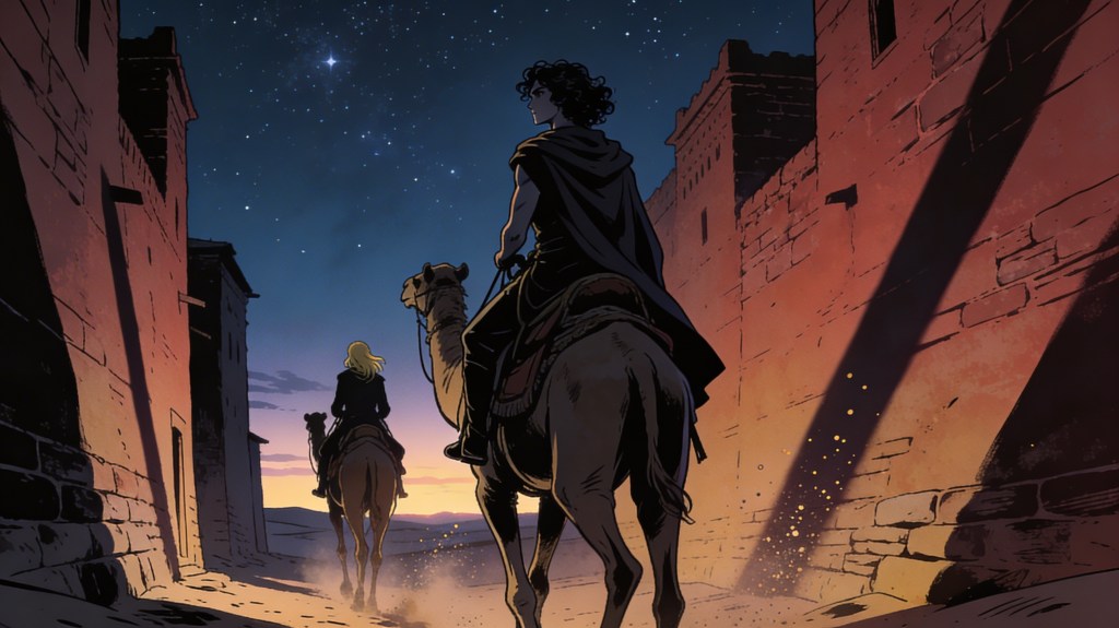 We slip out of Chinguetti beneath the hush of paling stars, Karim leading our camels through winding alleys where only the curious wind gives us away. The city behind us is a patchwork of memories — its stories, its lingering dangers — and what lies ahead shimmers with both promise and risk.