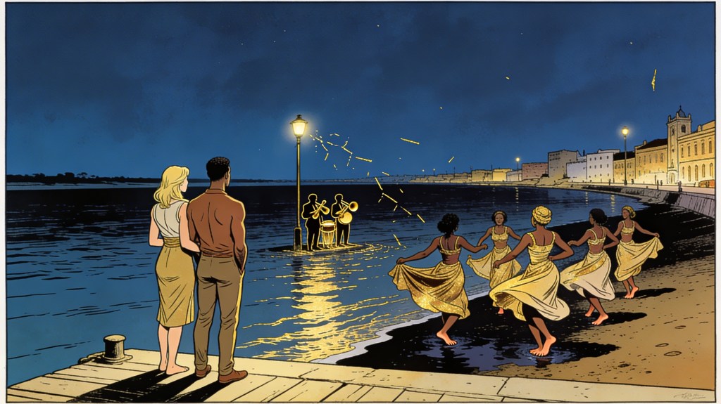 Saint-Louis at night is velvet and brass. A thin man with a battered trumpet sizes me up and tells me the real stories live where women dance barefoot on the sand. Later I watch them at the water’s edge and believe him.