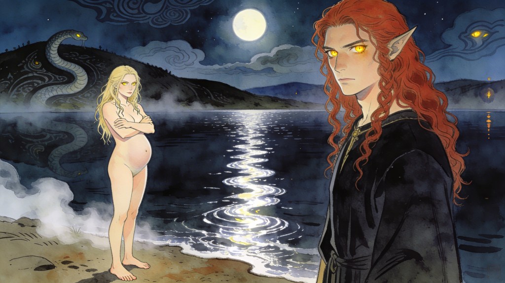 When I open my eyes, I’m barefoot on soft earth. Before me, a lake shimmers—moonlight rippling across its surface. I know this place: Lake Fundizi. And there, standing motionless on the shore, is Asdar.