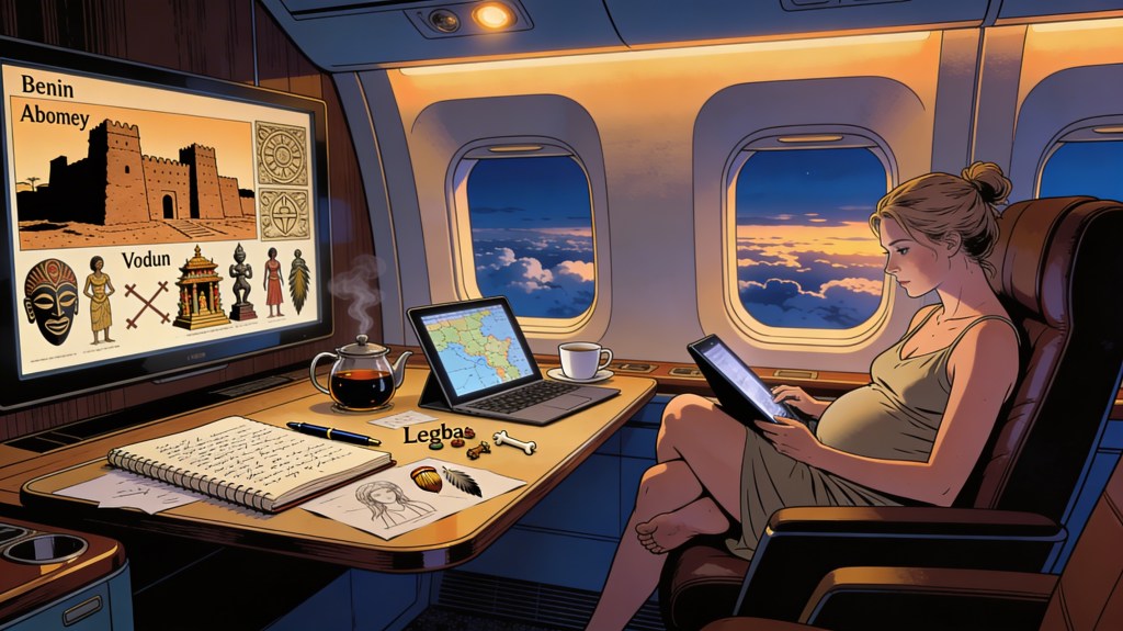 “A device to research Benin, please. And my notepad. A pot of black tea wouldn’t hurt either.”